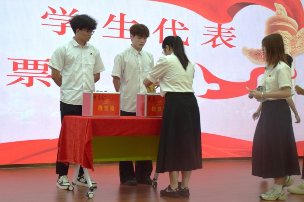 大会选举产生了财经学院第六届团委委员会委员、第九届学生会主席团成员及第九届学生会委员会委员。各位候选人逐一发表竞选演讲并进行个人简介PPT展示。与会代表认真听取了各位候选人的竞选演讲,填写选票并投入投票箱,充分行使民主权利。