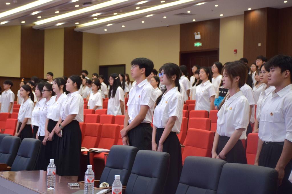 会议最后,全体参会人员起立,齐唱《中国共青团团歌》。主持人陈思源向出席本次会议的所有成员及工作人员致以诚挚谢意,并正式宣布广东技术师范大学财经学院第六次团员代表大会暨第九次学生代表大会圆满落幕。