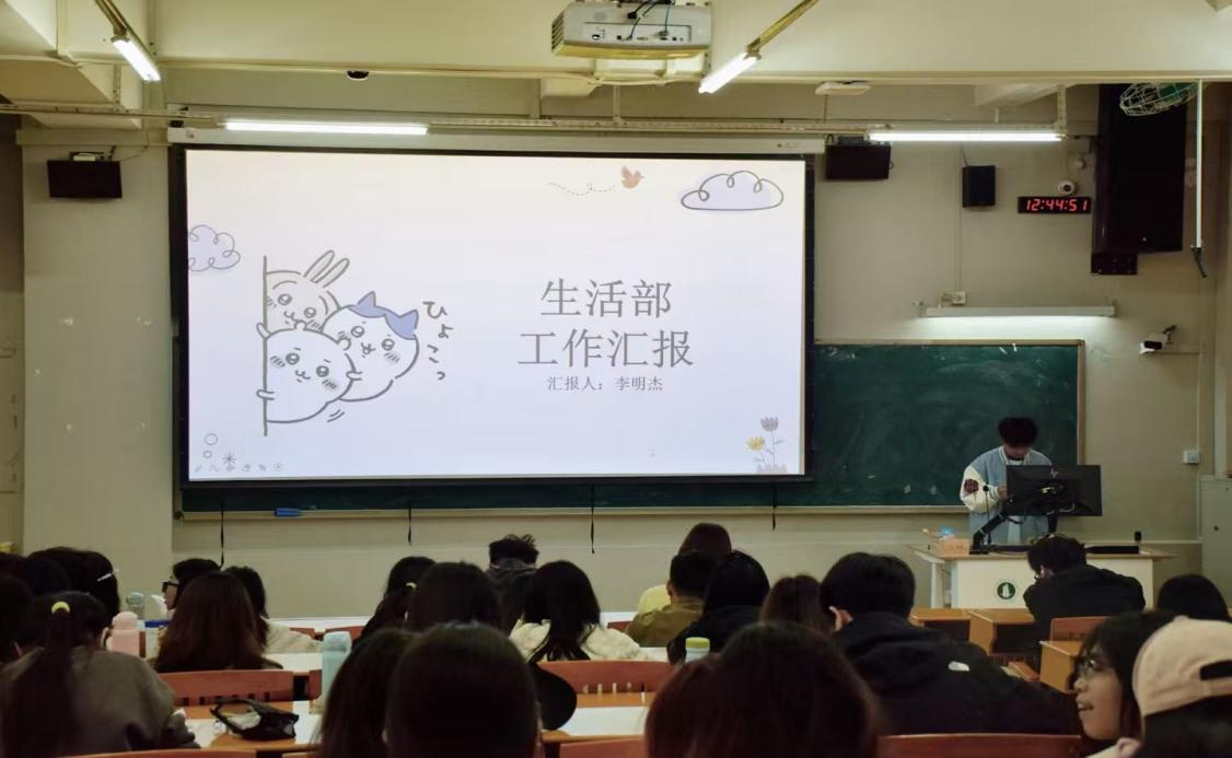 学生会生活部负责人李明杰重点介绍了本学期部门核心工作的开展情况。他表示,生活部围绕宿舍管理与校园文化建设双线发力,顺利完成部门招新宣讲、面试及预干培训等工作。同时有序开展白云、河源两校区宿舍卫生检查,成功举办宿舍文化节、晨读月、宿舍公约评选等特色活动,切实营造了整洁有序的住宿环境与浓厚的校园氛围。未来,生活部将持续优化宿舍管理相关工作,策划更多贴近同学生活的特色活动,着力提升服务质量,为同学们营造更舒适的校园生活环境。