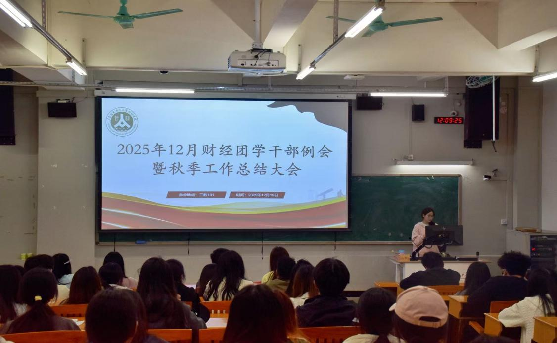 2025年12月19日,财经学院团委、学生会在白云校区第三教学楼101教室召开本学年第三次集体工作总结会议暨秋季工作总结大会。此次会议旨在全面回顾总结本学期各部门工作开展情况,系统梳理工作成效与短板不足,同时明晰下学期工作核心任务与改进方向。会议由学生会主席团成员肖琳主持,财经学院辅导员、团委书记陈逸珺,财经学院辅导员、团委副书记李琢,团委学生兼职副书记,主席团成员及白云校区全体团学干事参会。