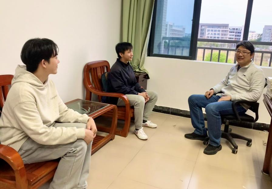 黄伟文副书记与 22 级财管 2 班朱坤杰、22 级会计 3 班何敏婧等同学以日常谈话营造轻松氛围,深入了解班级和个人问题与困惑。副书记凭借多年辅导员的工作经验,针对学生在班级和个人发展中遇到的问题,给出了许多实用的建议。他分享了许多学生从迷茫走向成功的真实案例,鼓励学生们积极参加各类比赛,在实践中锻炼自己,不断提升自我管理和自我提升能力。