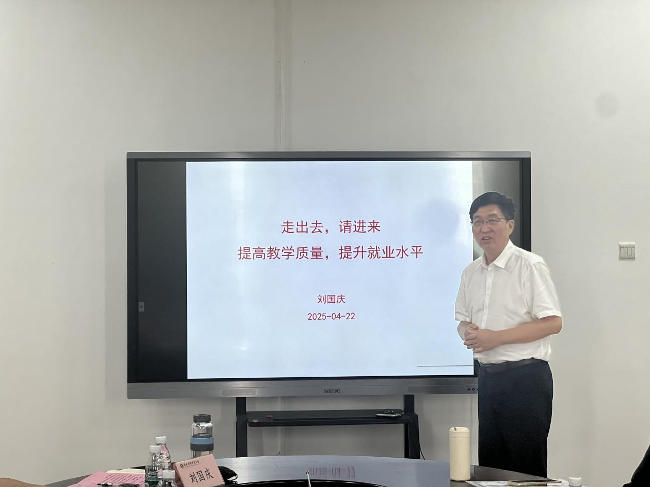 学院副院长刘国庆对“访企拓岗”专项行动进行工作部署,强调要坚持“全员、全过程、全方位”统筹推进岗位拓展,要以“招生—培养—就业”一体化逻辑反推人才供需匹配,紧抓“走出去”与“请进来”双向联动,充分挖掘校友资源、实习基地、行业企业合作潜力,建立健全实习就业一体化机制,持续拓展高质量岗位资源。
