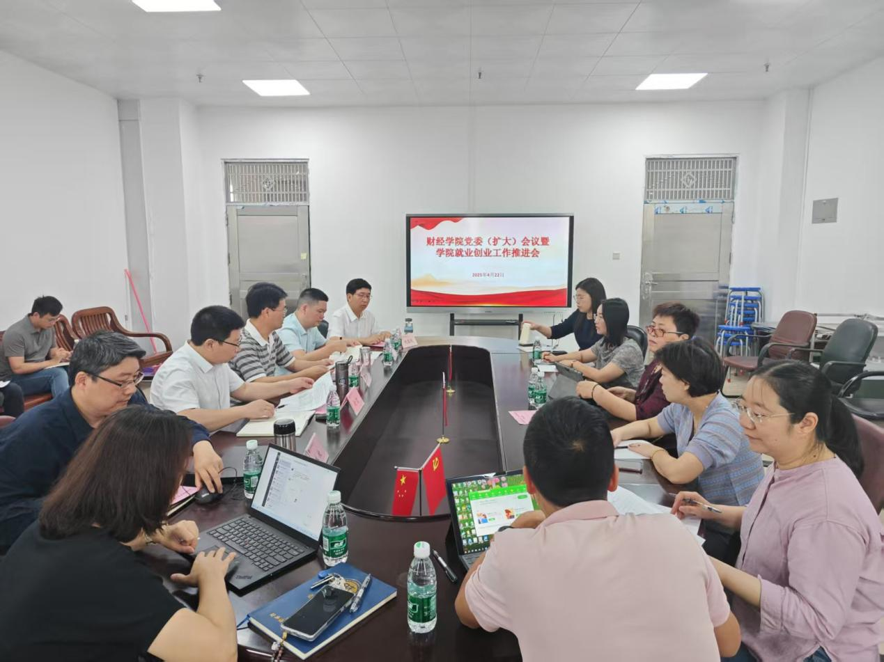 为深入贯彻落实党中央、国务院关于高校毕业生就业工作的决策部署,推进学校“访企拓岗”专项行动,加快构建财经学院高质量就业工作体系,4月22日下午,财经学院在白云校区一教317召开党委(扩大)会议暨就业创业推进会议。学院全体领导、系主任、毕业班班主任、教务员、辅导员参会。会议由学院党委书记吴松主持。