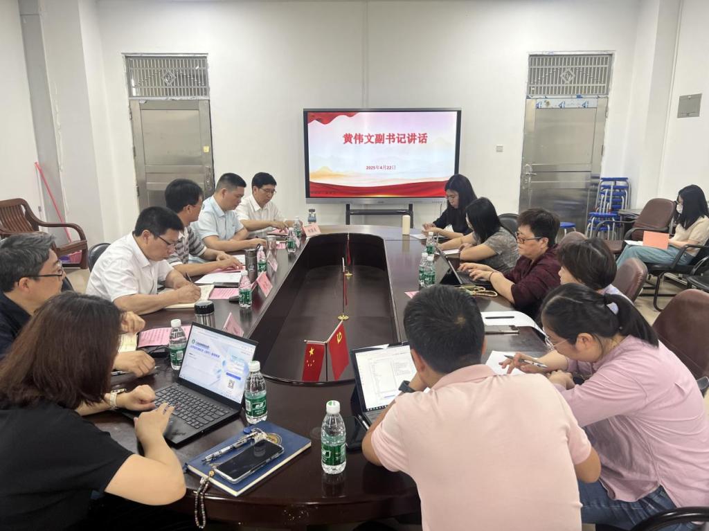 随后,学院党委副书记黄伟文围绕“提高政治站位、强化系统落实、确保高质量就业”三方面作主旨发言。他系统传达了近期中共中央办公厅、国务院、教育部、人力资源和社会保障部以及广东省教育厅有关高校毕业生就业工作的会议精神与政策要点。他指出,就业关乎学生前途命运、学校声誉发展,更关乎党和国家人才战略全局。他深入分析了2024届就业落实情况和2025届就业推进形势。他指出,当前毕业生就业工作艰巨,各专业、各岗位要形成合力,分类施策,全员参与,强化帮扶,确保实现就业工作“稳中提质”的目标。