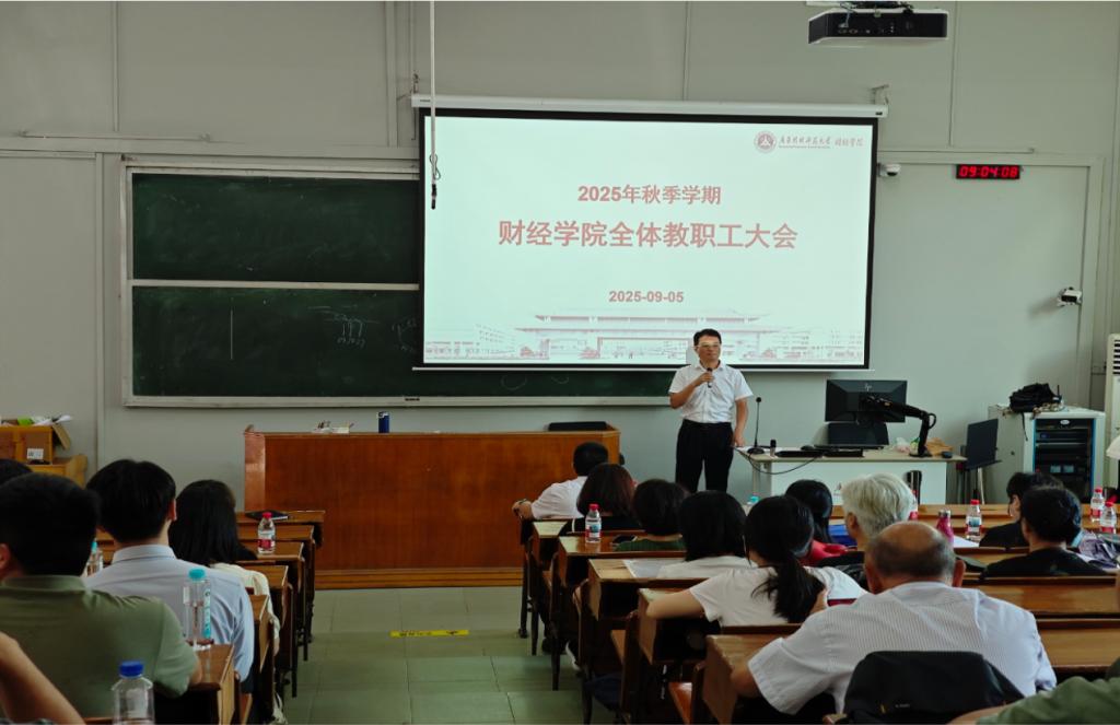 2025年9月5日,财经学院在东校区第一教学楼207召开2025秋季学期教职工大会。会上学院领导班子全面总结工作成效,系统部署新学期重点工作。大会由学院党委书记吴松主持,全体教职工参会。