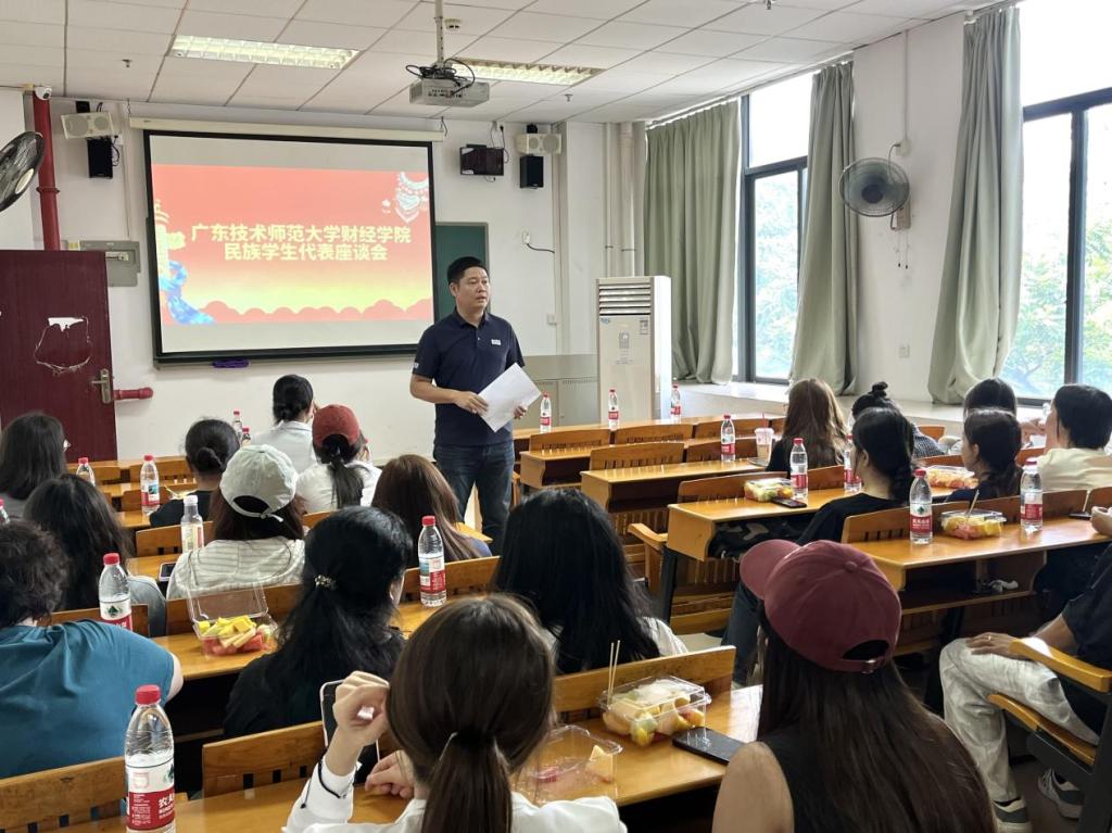为进一步关心民族学生学习生活,促进各民族文化交融,增强学生归属感与幸福感,财经学院于 2025 年 9 月 15 日、17 日分别在河源校区、白云校区召开民族学生代表座谈会。学院党委书记吴松、党委副书记黄伟文出席座谈会并讲话。