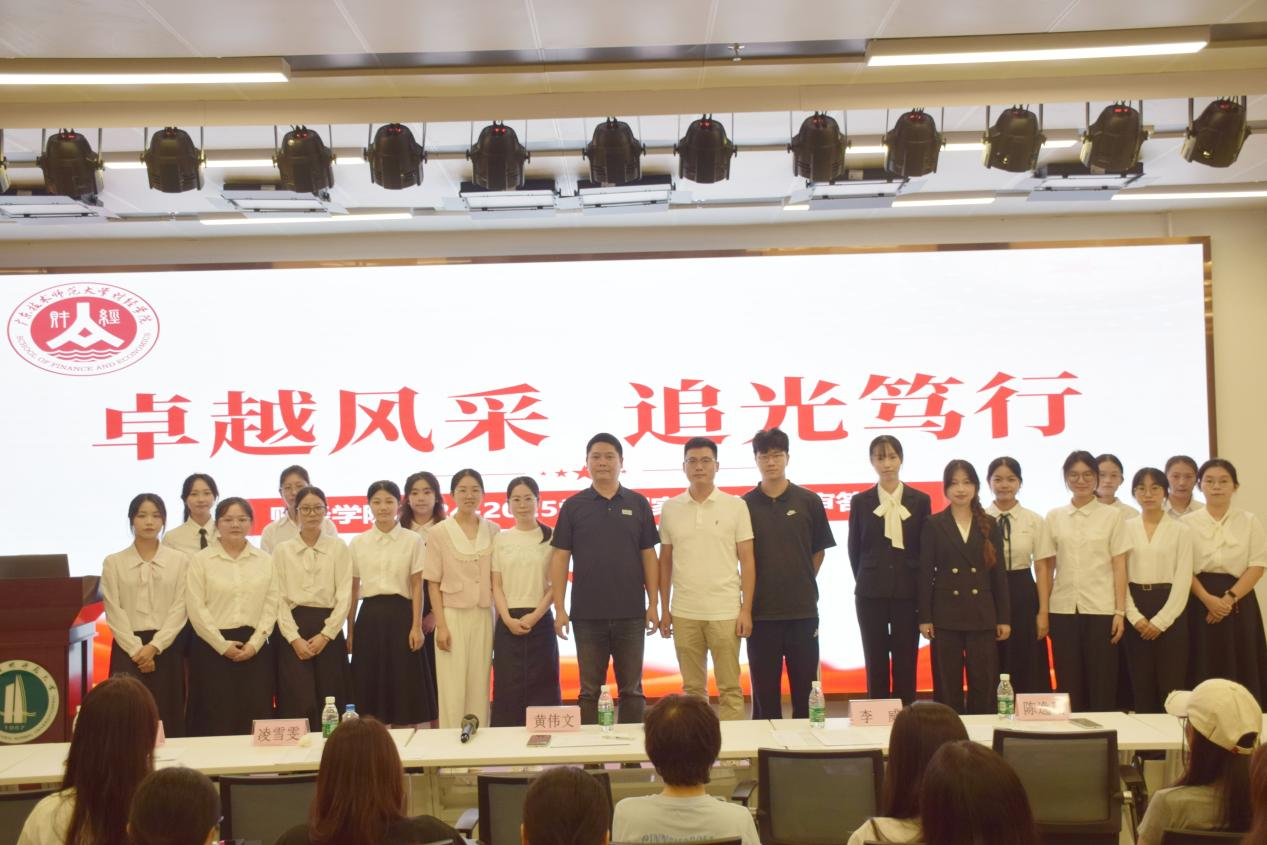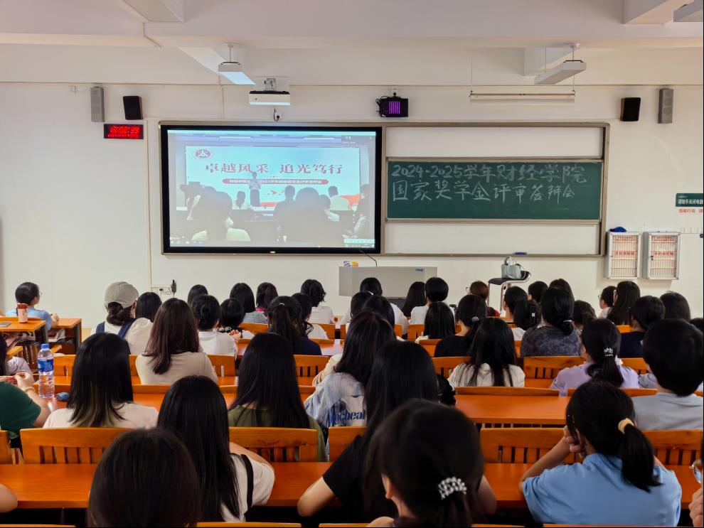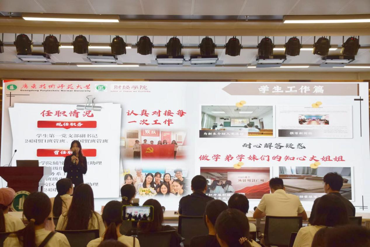 为深入贯彻落实立德树人根本任务,充分发挥优秀学生的榜样引领作用,激励全院学生以先进典型为标杆,锐意进取、奋发向上,9月21日,财经学院2024-2025学年国家奖学金评审答辩会,在广东技术师范大学白云校区图书馆达之学堂顺利举行。财经学院党委副书记黄伟文、辅导员老师、学生代表现场参会,财经学院河源校区师生通过线上连线方式同步参与,共同见证优秀学子们的风采展示与成长成果。