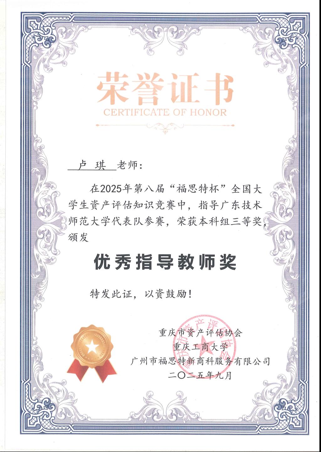 由全国资产评估高等教育实验教学研究会主办,重庆市资产评估协会、重庆工商大学承办的第八届“福思特杯”全国大学生资产评估知识竞赛本科组决赛于9月13日在重庆成功举办。赛事吸引了来自集美大学、上海立信会计金融学院、武汉理工大学、重庆工商大学、南京审计大学、南京财经大学、云南财经大学、江西财经大学、广东财经大学、河北经贸大学等43所高校的队伍参加角逐。由财经学院刘茵茵、吕锦玲、罗元三位同学组成的参赛团队代表我校,在财经学院卢琪、欧阳莹两位老师的精心指导下,默契配合、沉着应答,最终斩获第八届 “福思特杯”全国大学生资产评估知识竞赛三等奖。