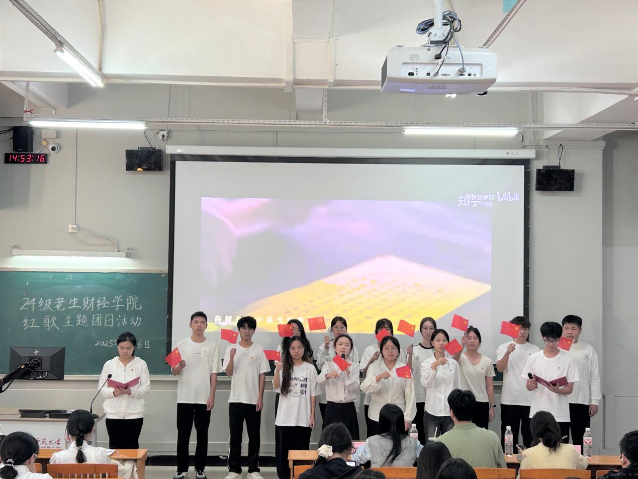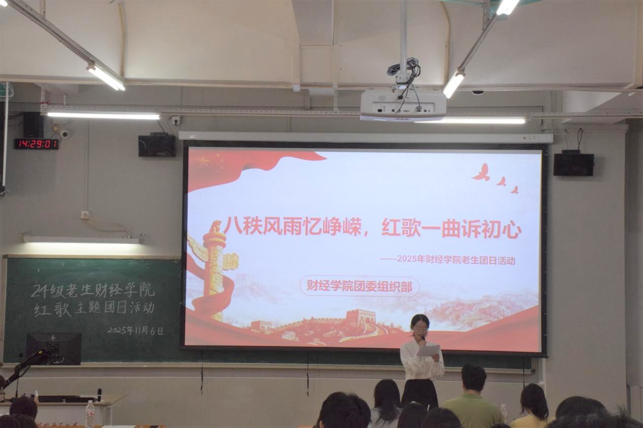 为传承红色精神、厚植爱国情怀,财经学院于2025年11月6日下午在白云校区三教107举办“八秩风雨忆峥嵘,红歌一曲诉初心”主题团日活动。本次活动由财经学院团委组织部主办,邀请了辅导员、学院团委书记陈逸珺老师,辅导员、学院团委副书记李琢老师以及辅导员黎星妍老师担任评委。