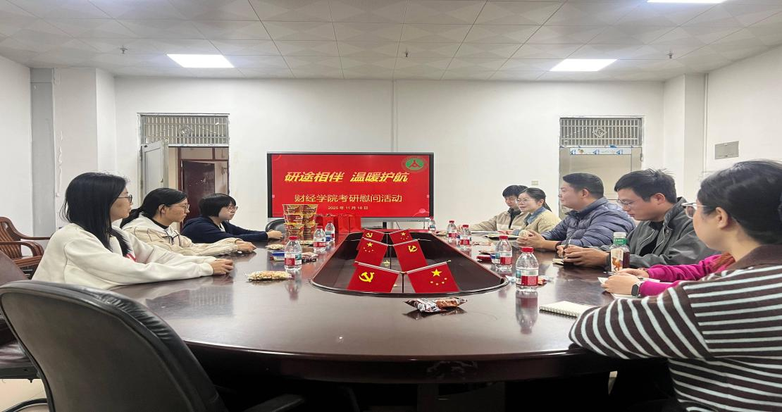 本次慰问活动不仅为考研学生代表送去了物质上的支持,更给予了他们巨大的精神鼓舞。相信在学院的暖心护航下,财经学院2026届全体考研学子必将以更加昂扬的斗志和坚定的步伐,在即将到来的研考中披荆斩棘,实现梦想,创造辉煌!