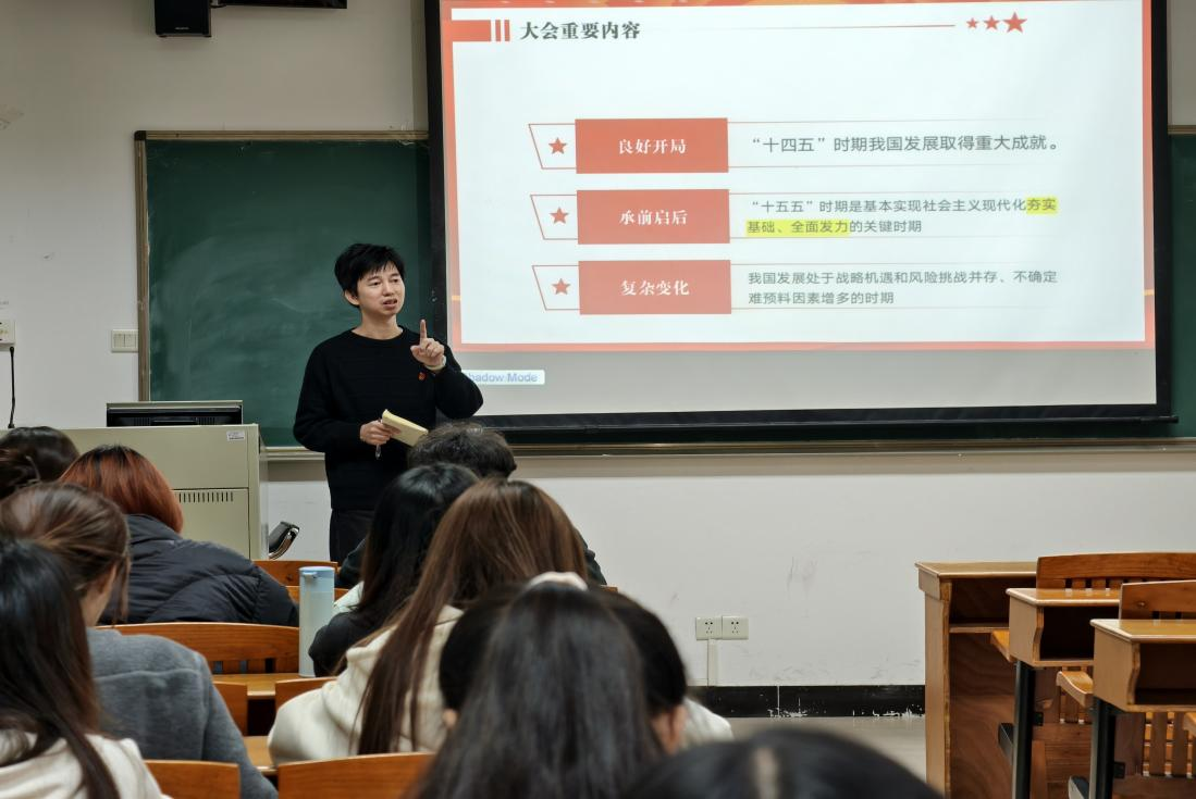 2025年11月21日,财经学院研究生党支部与研究生会在白云校区第一教学楼301教室联合举办深入学习贯彻党的二十届四中全会精神学习会暨“青春年少好读书”活动。党团组织携手联动,别开生面;“理论学习”遇上“青春阅读”,精彩纷呈。此次专题学习由研究生党支部书记吴士杰主持,读书主题活动由研究生会主席团成员黄乔楠主持,财经学院研究生党支部全体成员及研究生会全体成员参加学习。