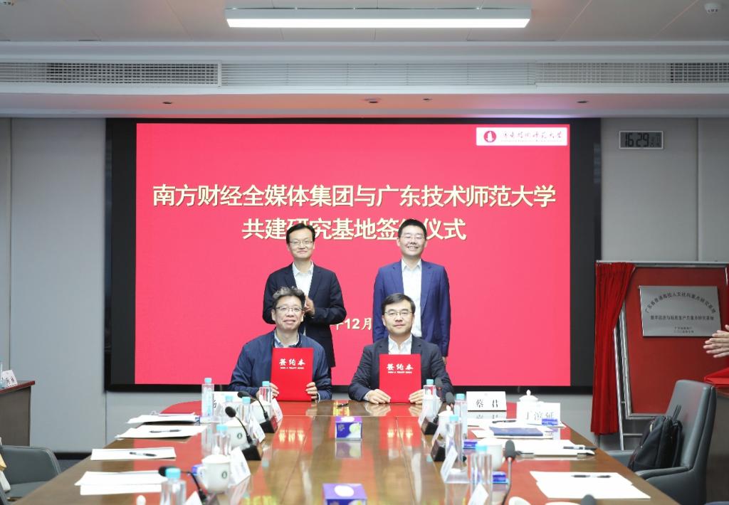 随后,南方财经全媒体集团与我校签署了共建研究基地合作协议,双方将通过“揭榜挂帅”方式组建联合研发团队,由媒体提出技术需求,高校组织跨学科团队攻关,共同承担数字经济与新质生产力等重大课题研究,推动典型场景应用示范,实现技术突破、产品创新,推进技术突破与成果转化落地。