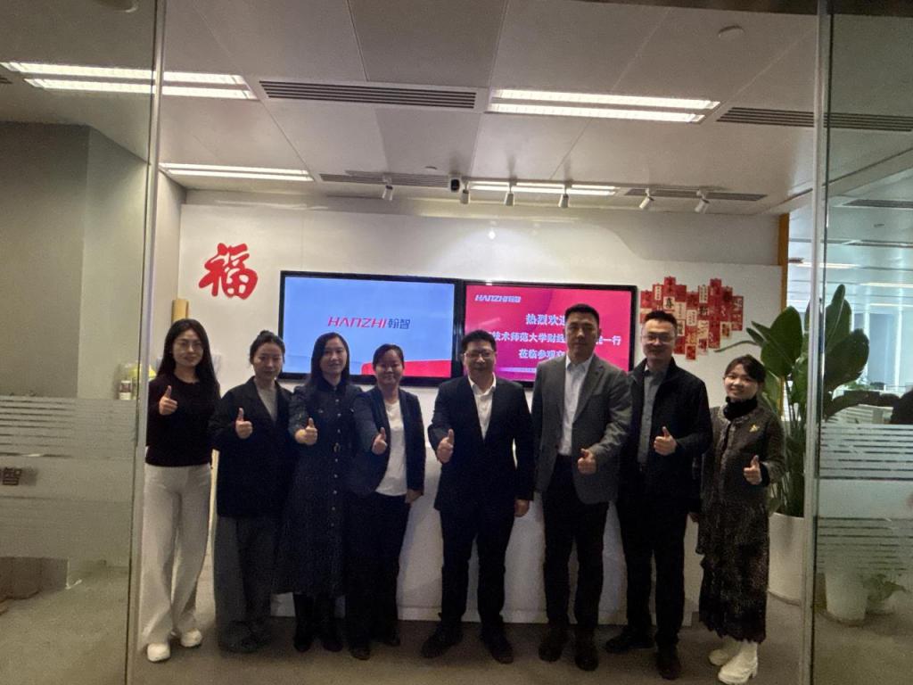 为进一步推进产教融合与校企合作,促进数字化人才培养和创新,2025年12月18日,财经学院院长向凯,会计专硕中心主任陈芸、副主任左静璇,会计系主任茹璟,数字经济系副主任丰晨宇一行5人赴翰智集团广州总部开展校企业合作交流活动,受到广东翰智数字科技有限公司副总裁姜巍、副总裁翁义春,校企合作总监姚周红的热烈欢迎。