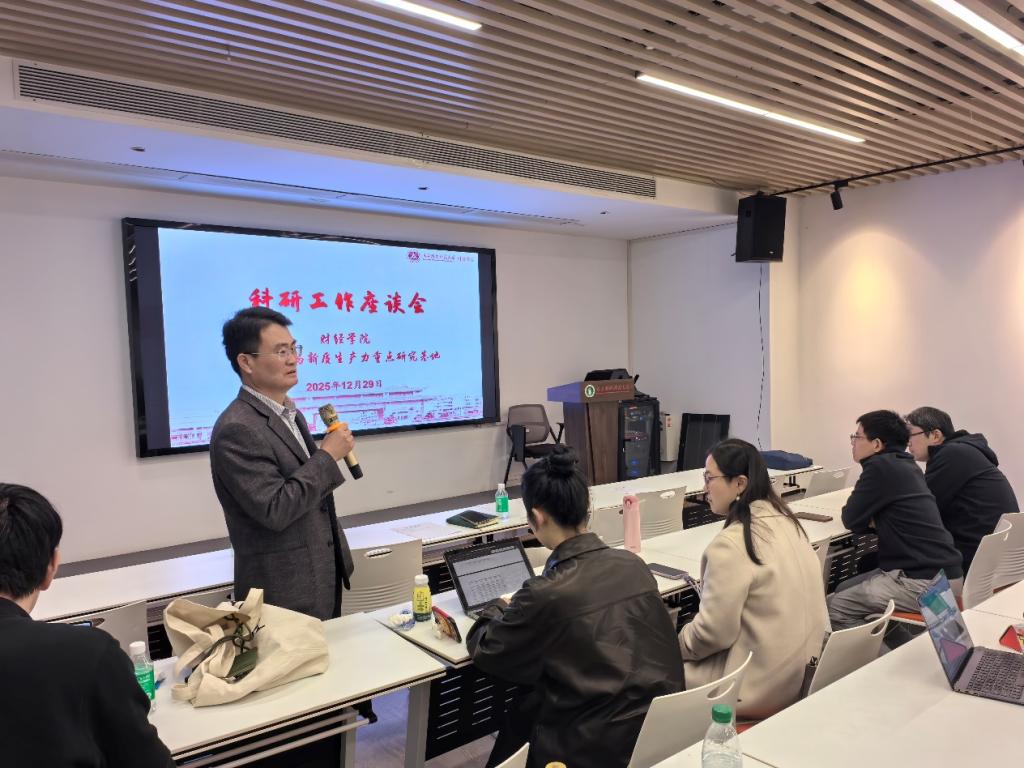 2025年12月29日,财经学院在东校区工业中心803室举办科研工作座谈会。学院党委书记吴松、副院长周清及45岁以下教师出席座谈会。座谈会由财经学院院长向凯主持。