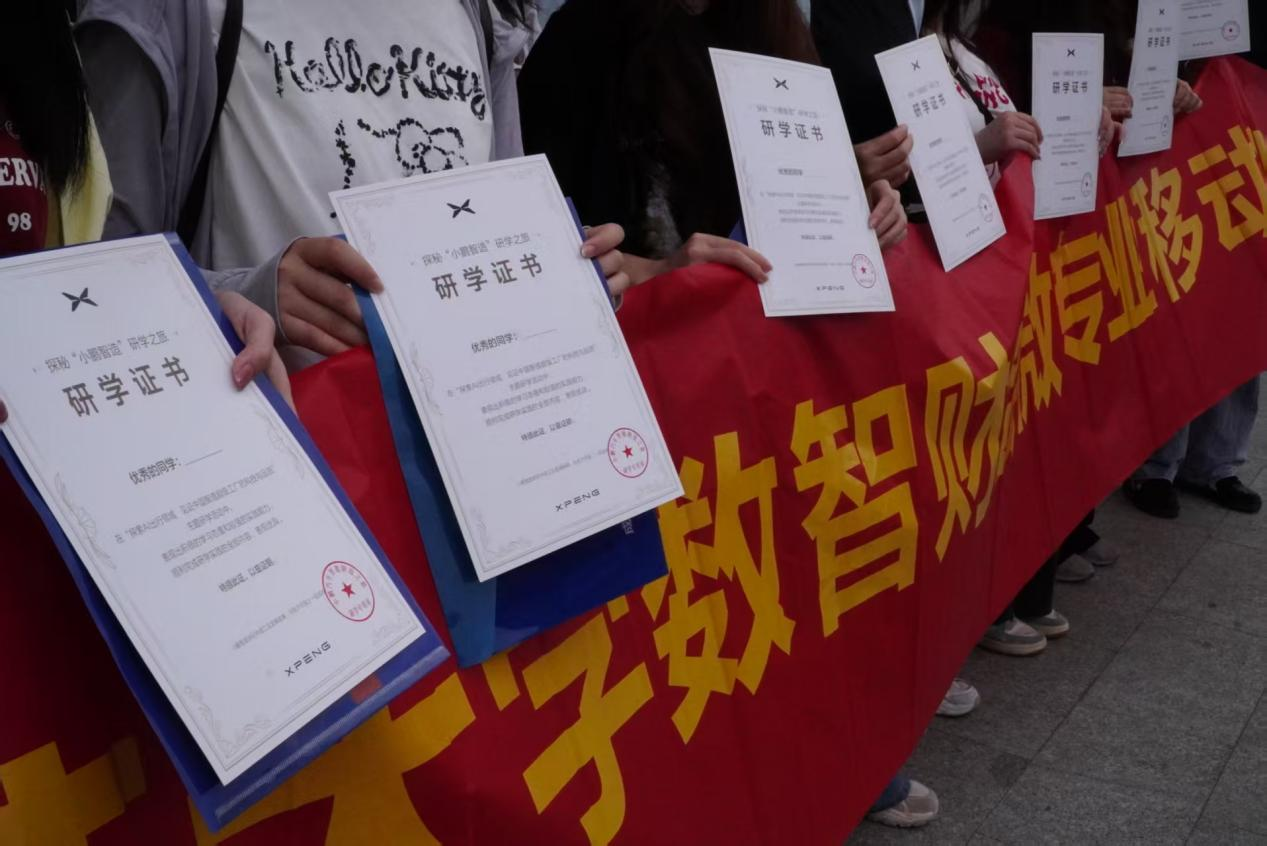 研学活动进入收尾环节,工作人员为每位学生颁发研学证书,全体师生再次合影留念,定格这场充实而有意义的研学之旅。随后,学院组织学生在小鹏员工餐厅用餐,让大家近距离感受企业文化与企业氛围,体会现代企业的人文关怀。最后师生们有序乘车返校,本次小鹏广州生产基地研学实践活动圆满落幕。