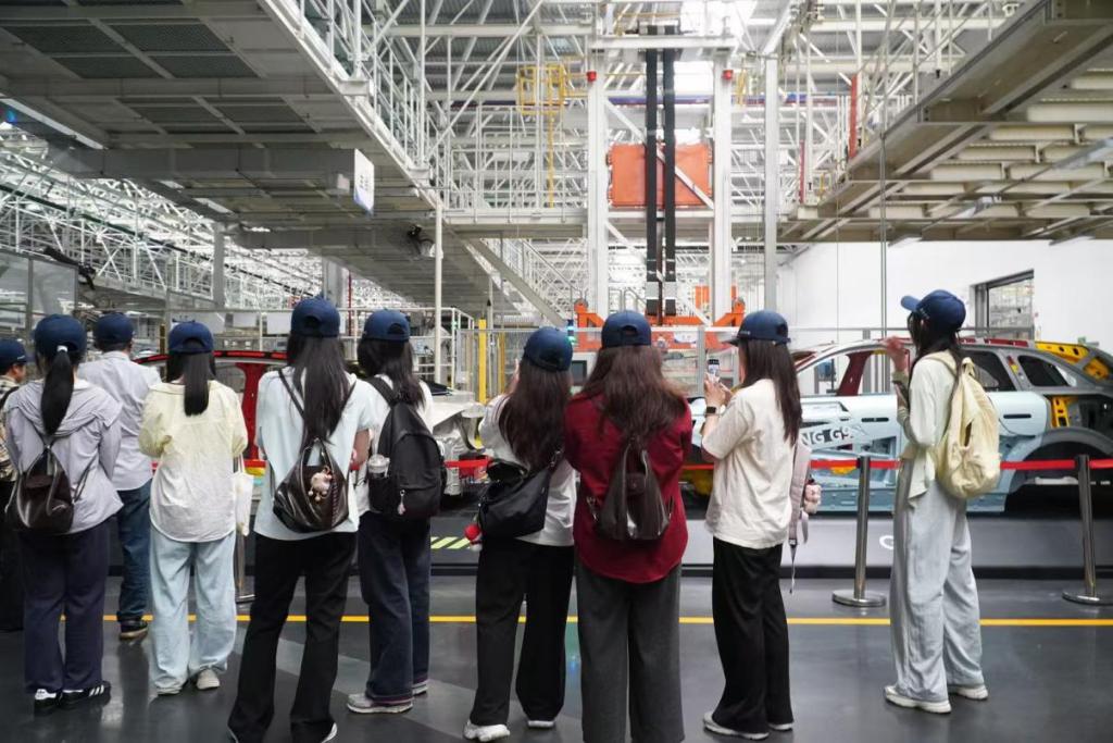 同学们走进总装车间,探秘汽车结构与整车组装流程。在工作人员的讲解下,大家近距离观察小鹏爆款车型的生产组装全过程,亲眼见证一辆新能源汽车从零部件到整车成型的下线过程。从零部件精准装配到整车调试检测,每一个环节的严谨与规范,都让同学们对汽车生产全流程有了全面认知,也对新能源汽车产业的发展前景有了更清晰的判断。